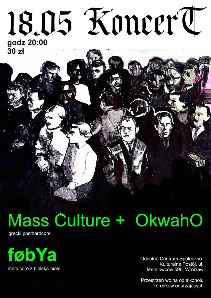 EJ TO ZARAZ! Sobotni najazd post-hardcore! MASS CULTURE + OkwahO + FobYa